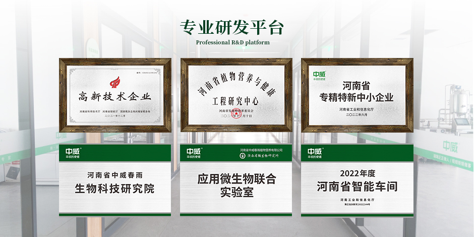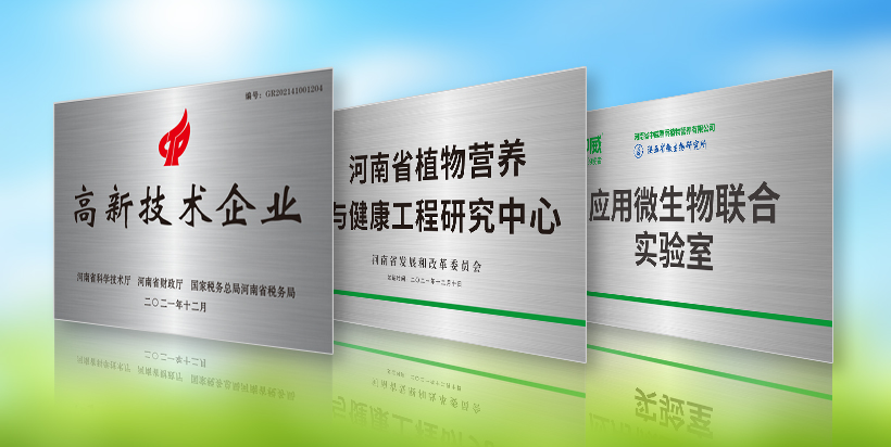 國(guó)家高新技術(shù)企業(yè)、河南省“專精特新”中小企業(yè)、“河南省植物營(yíng)養(yǎng)與健康工程研究中心”,與西安交通大學(xué)、陜西省微生物所聯(lián)合建設(shè)“應(yīng)用微生物聯(lián)合實(shí)驗(yàn)室”。